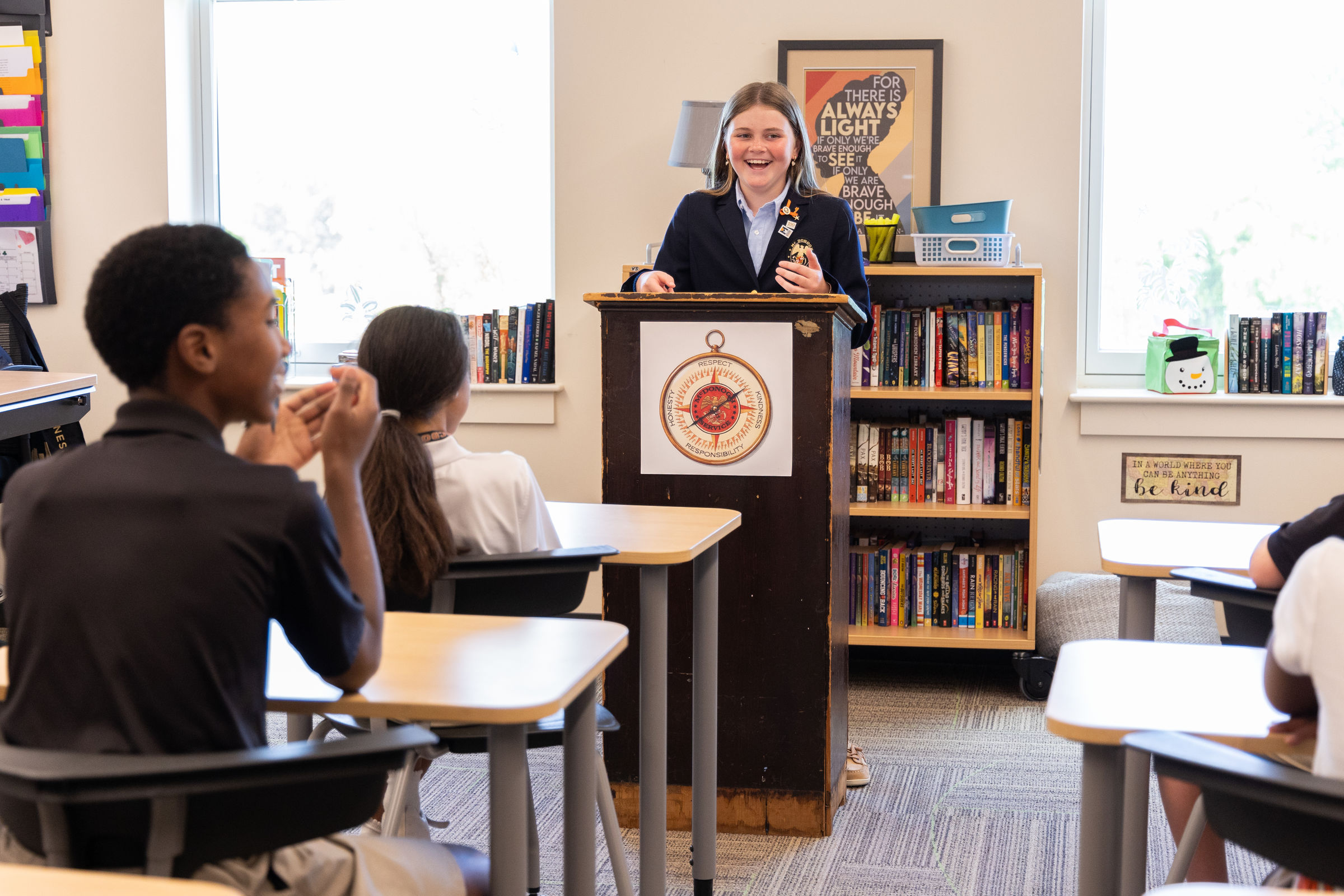 The Eighth Grade Leadership Group provides students with a myriad of opportunities to serve and support McDonogh and our neighboring communities. Students learn how to identify worthwhile causes and initiatives and how to reach decisions by consensus. They learn how to make proposals, set and revise their goals, create plans, delegate assignments, and manage setbacks. Students are in charge of the success of every project or event they undertake. The Eighth Grade Leadership Group has recently worked at a soup kitchen, assisted with Lower School students, planned dances and social events, organized Spirit Week, served as morning meeting emcees, written for the Middle School newspaper, held bake sales, and more.