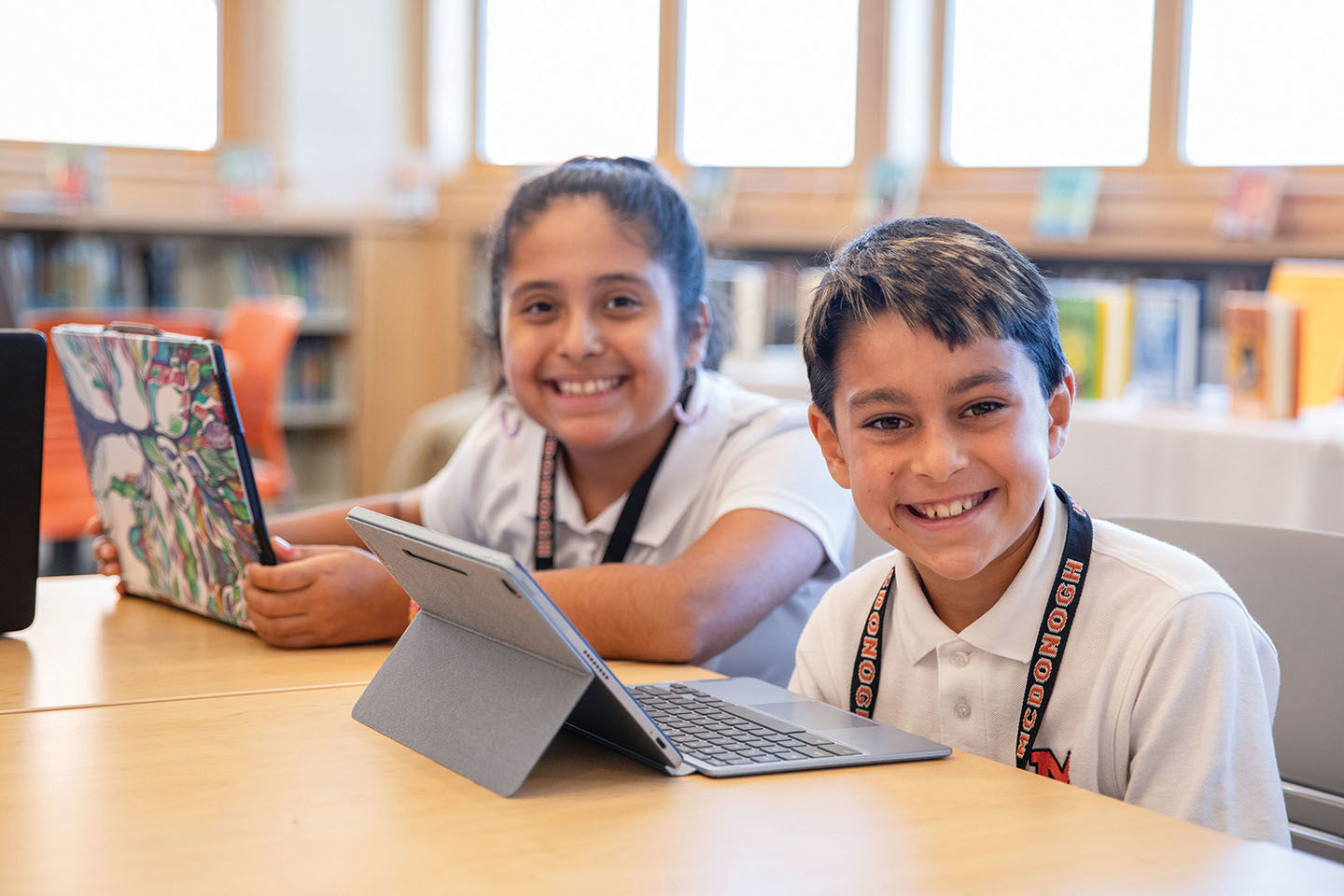 Middle School students are required to bring a laptop to school. We like to say that it is one more tool in their backpack, just like a spiral notebook. We believe technology is one way to learn and communicate, but it is not the only way. Technology is integrated into all subject areas rather than offered as a distinct course. Technology skills are introduced and reinforced across each grade level, with skills taught in one course revisited throughout the year in other courses. The Middle School insists on the responsible use of technology.